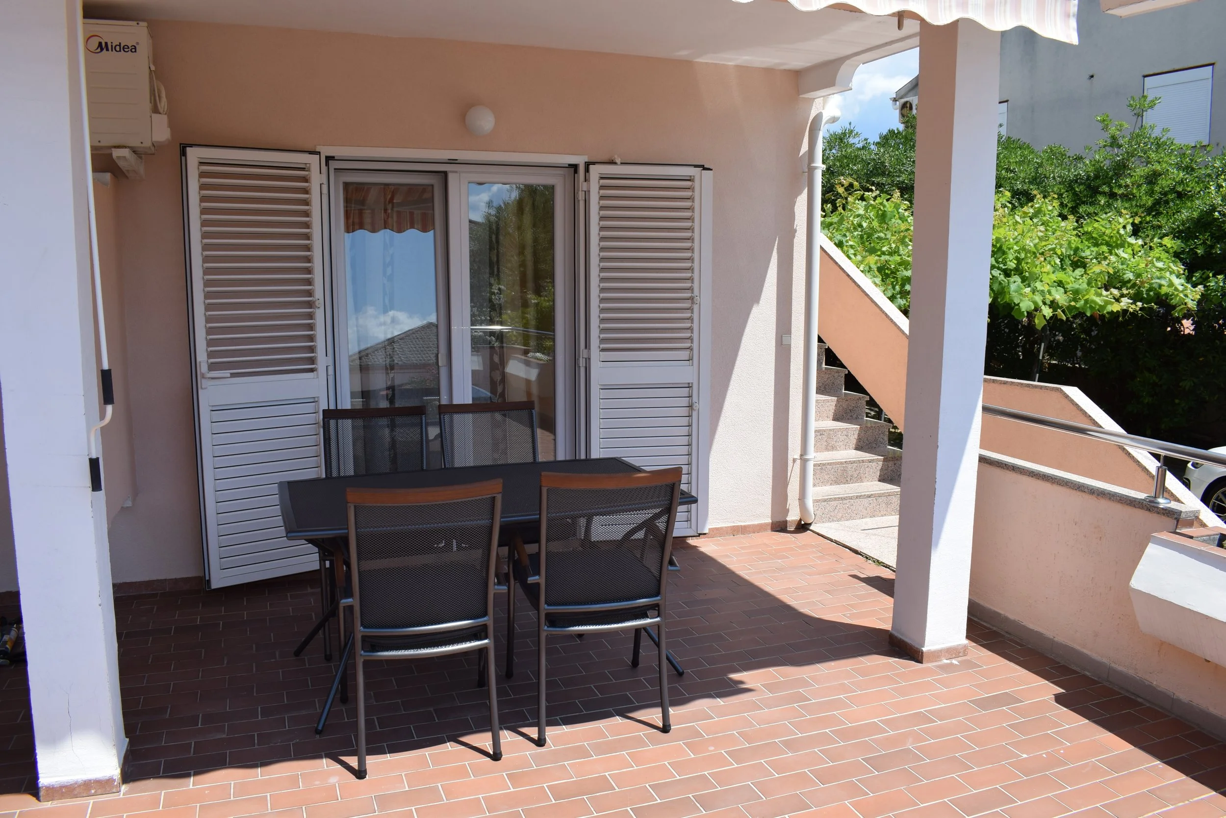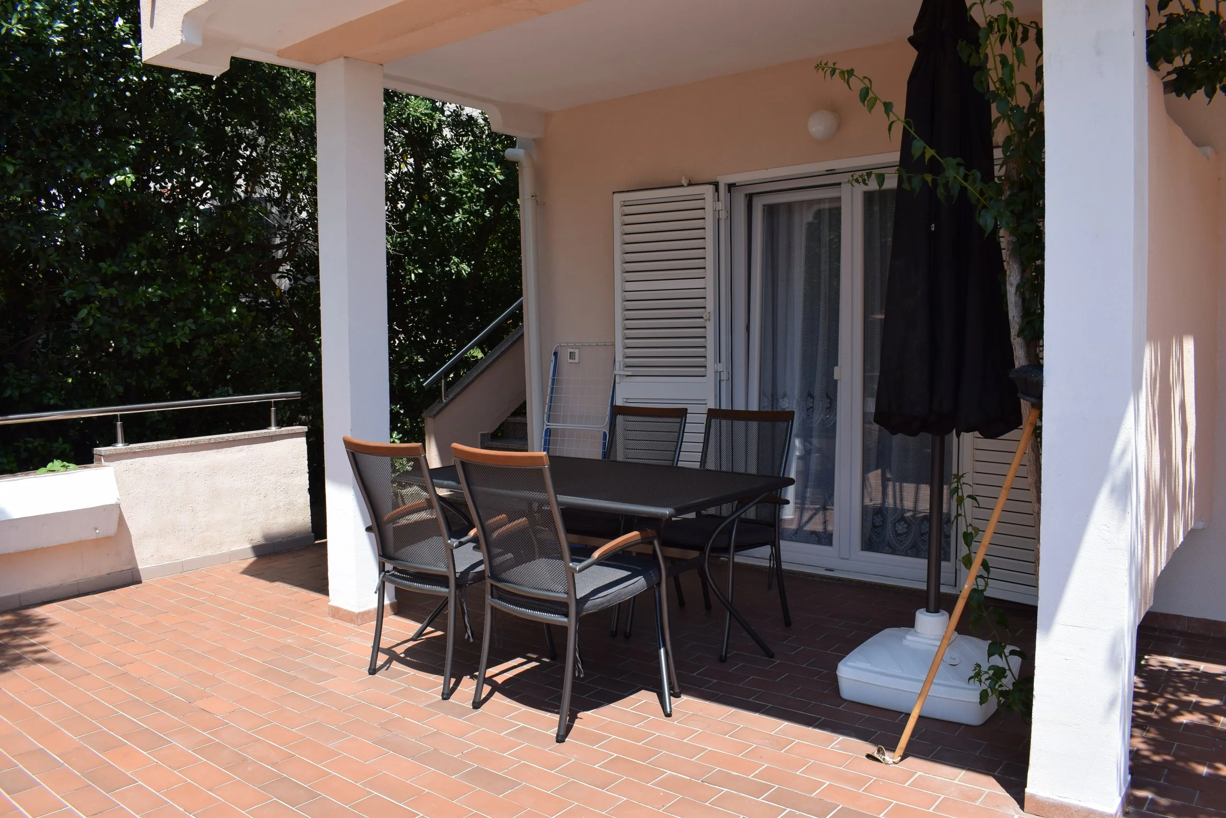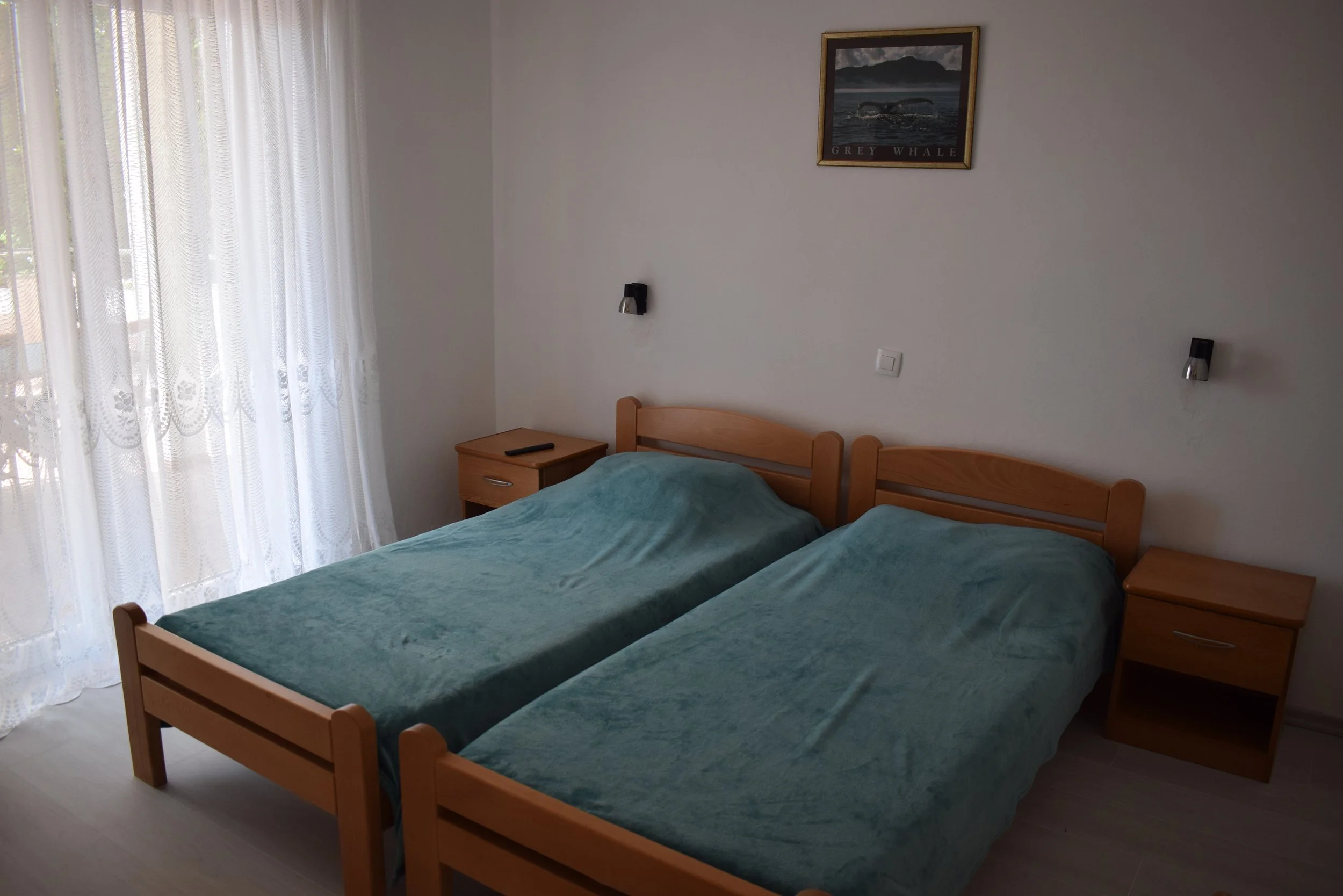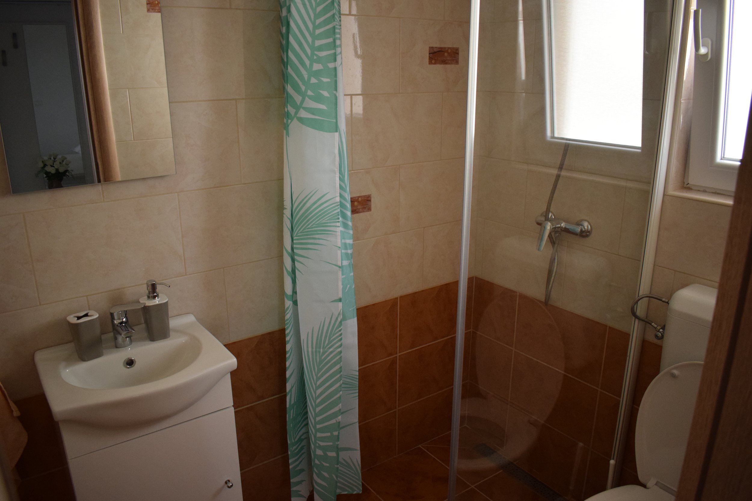 Apartment is on the first with partial sea/city view. There is queen bed (180x200cm) in bedroom and two single beds (90x200cm) in other bedroom with balcony access. Kitchen is equipped with stove, microwave and fridge. Offer includes parking spot.