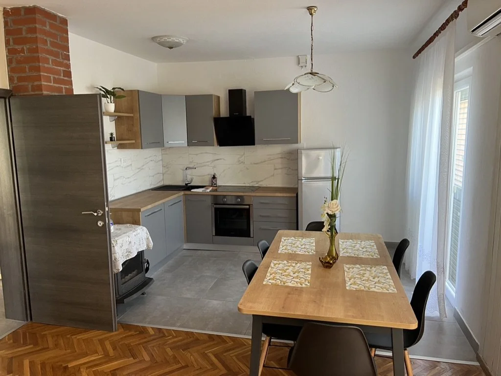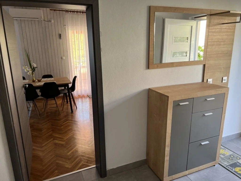Apartment is on the first with partial sea/city view. There is queen bed (180x200cm) in bedroom and sofa bed in the living room (150x200cm). Kitchen is equipped with dishwasher, oven, induction stove and fridge. Offer includes parking spot.